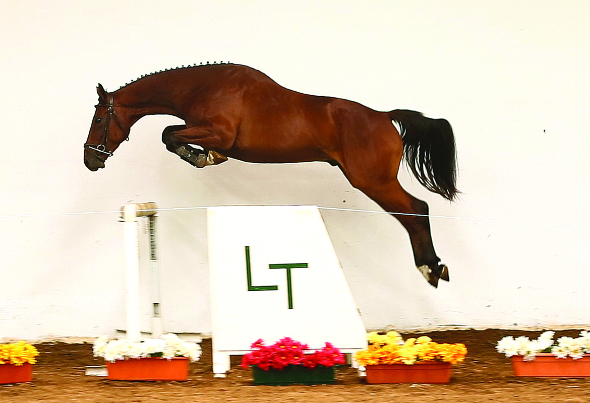 Milano de Flore, Burggraaf, Abdullah and Voltaire in one pedigree. Burggraaf combines Landgraf I and Cor de la Bryere. Under Conrad Homfeld, Abdullah won medals in Los Angeles Olympics, World Cup, etc. The dam is a sister of T. Talullah (dam of lot 4 of this catalog), T. Umbelina (Per), T. Rusticana (Per), T. Bianca (lot 14 of this catalog). Full sister of Tatabra Beijing, lot 29 of this catalog.